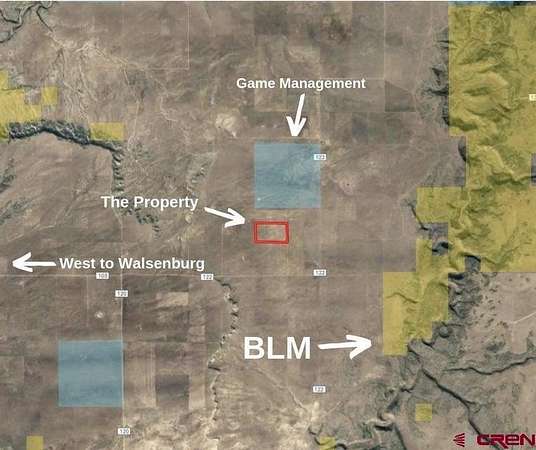 Est $434/moMelissa Miller, Code of the West Real Estate, LLC, 719-568-8905, melissa@cotwrealestate.com, www.crenmls.com: Expansive 87 acres with big sky views of the Greenhorn Mountain, and endless sunsets! This property offers maintained roads for year-round access. Located in Turkey Ridge Ranch, bordering 6000+ acres of BLM with the Cucharas Canyon River running through it. Experience abundant wildlife, including turkey, mule deer & pronghorn. Power at the parcel's edge and ideal for building, raising animals or recreating! Located northeast of Walsenburg, which offers shopping, restaurants, amenities and a hospital as well.