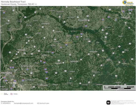 Located in Eastern Hardeman County, approximately 90 minutes east of Memphis and the Mississippi River, the Hornsby Southeast Tract offers the rare opportunity to acquire a large contiguous timberland investment property. Two primary access points lead to a well-established internal road system that provides logging and recreational access throughout the parcel.