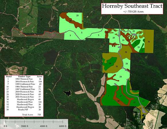 Investors will appreciate the diversified timber inventory, which consists primarily of mixed merchantable pine plantations that show immediate income potential. In addition, varying ages of pre-merchantable pine plantations offer long-term income potential. Finally, natural hardwood stands create prime habitat for deer and turkey. Adjoining properties consist mostly of large acreage farms and timberland properties.