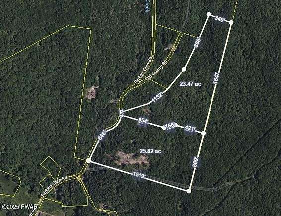 50 acres total already subdivided into two separate 25 acre lots. Located in the Rural District of Shohola Township, this property offers a multitude of opportunities. It is centrally located close to town, yet quiet and secluded and off the beat and path. Shohola meaning ''place of peace'', is the perfect place to build your luxury home or bring your imagination and create a place of recreation, glamping area, or build your own subdivision of mini homes. These two lots will accommodate 16 separate Single Family Dwellings on 3 acre lots or construct townhouses or condos. For more information on what you are able to do in the RD please refer to the zoning ordinance on the https://www.shoholatwp.org/wp-content/uploads/2021/08/Ordinance-No-80-Zoning.pdf Property is located close to Route 84 for commuters and 8 miles from dining and shopping in Historic Milford Borough.