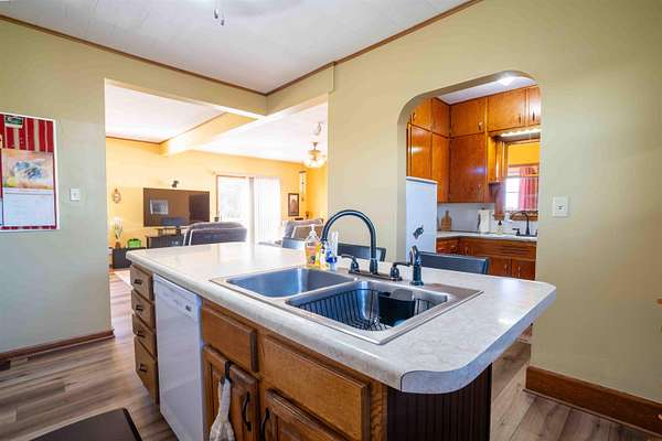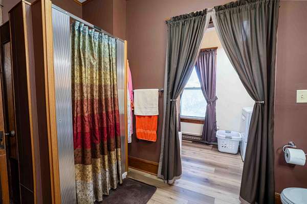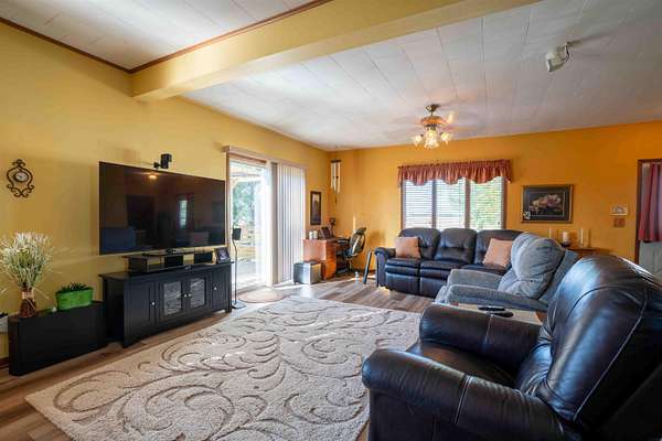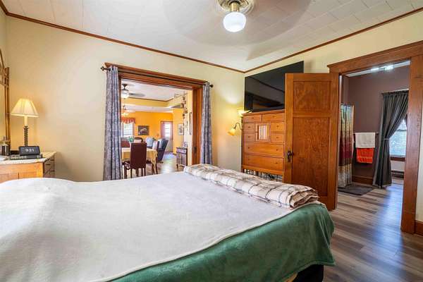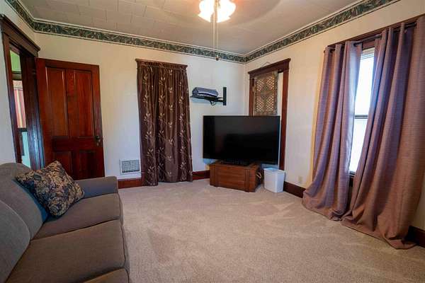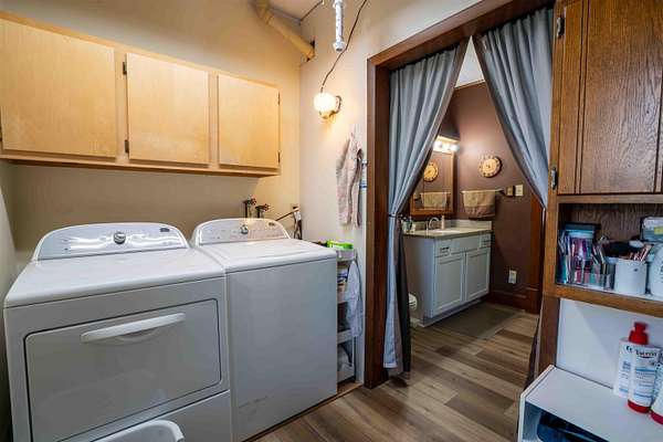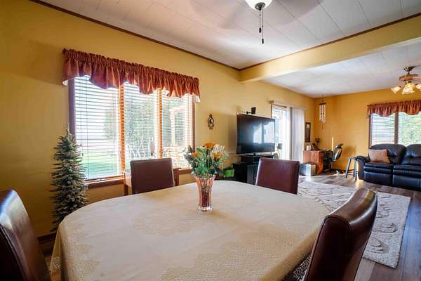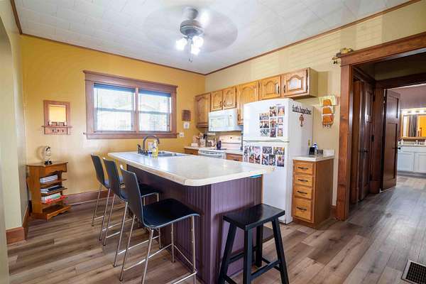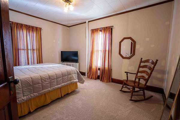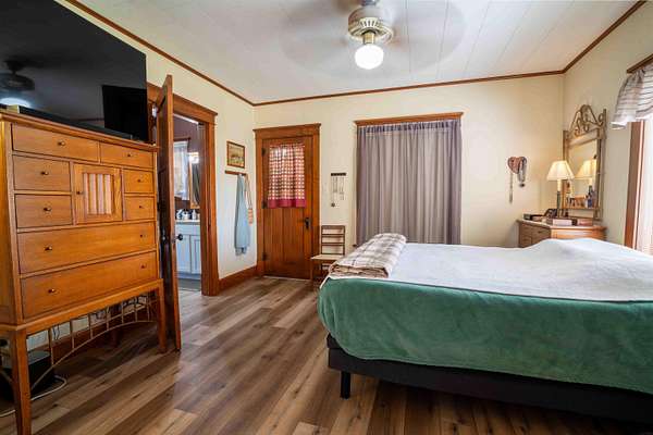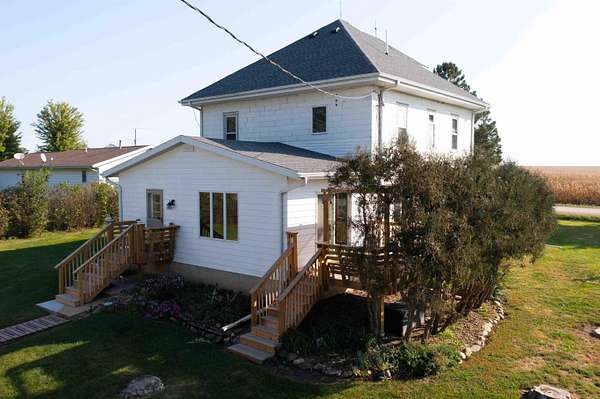 Acreage living in A/P school district with 4-5 bedrooms and 1-3/4 baths. Beautiful setting on 2.86 acres with generous home, outbuildings and private wooded area. The home's main floor offers open living, dining and kitchen areas with pocket doors to main-floor bedroom OR parlor. The adjoining updated 3/4 bath features separate room with laundry. Front porch currently used for storage, but provides a beautiful area to enjoy morning sunrises with your coffee. Upstairs you are greeted with 4 spacious bedrooms, updated full bath and access to a large attic for possible future living space. Updated shingles, some windows, all flooring, baths and both decks. Detached machine shed utilized as 3-stall garage and workshop. **Garage square footage is part of machine shed.
