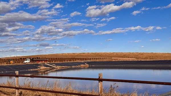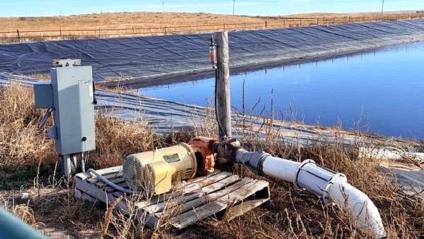 Waste water control per state approved permit is synthetic lined holding pond, two debris basins and a lift station to pump affluent to center pivot system in northwest corner of the property.