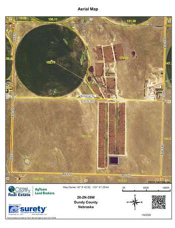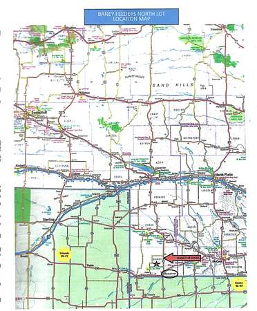 BANEY FEEDERS, LLC, NORTH LOT BENKELMAN, DUNDY COUNTY, NEBRASKATHE PROPERTY: The property has extensive improvements with a total of 640 acres with 8,500 head permitted feedlot; 134.5 certified acres of pivot irrigated cropland; approximately 380 acres of native grass pasture and pivot corners; 114 acres of feedlot, building site and residence; and balance in roads. The south facing slope and sandy loam soils are perfect for feedlot operations.