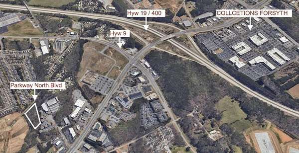 400 North, Exit 13 Peachtree Parkway, Turn Left, Right on Parkway North Blvd, Property is located behind the office condos.