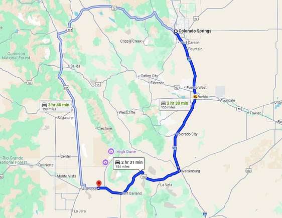 General Location: 11.6 miles to Alamosa, and 155 miles to Colorado Springs