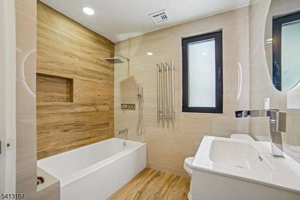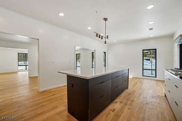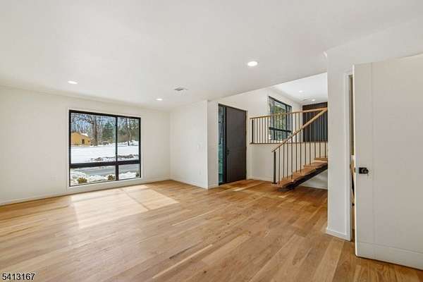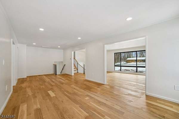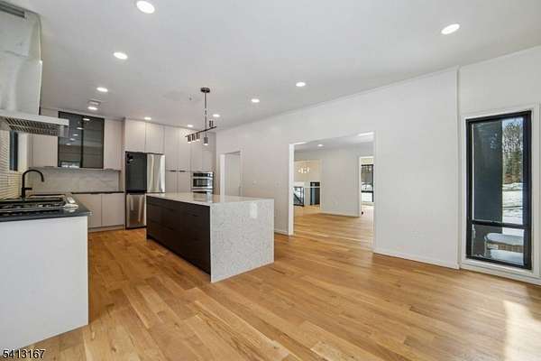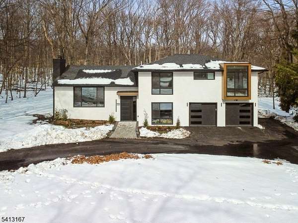Turnkey - Reimagined with a back addition, renovated & full remodel - Custom unique expansive & open floor plan. Over 3400 Sq ft on 1. 8 Acres - Dramatic curb appeal from the circular driveway. Modern stucco & techwood vertical siding complements the black 8 ft European steel front door & oversized aluminum windows. Everything is sun lit - living room with gas fireplace, dining room with additional seating area. WOW kitchen is what home chefs dream of! Breakfast area, huge Island, cabinets, quartz counters & smart appliances. Convenient powder room & steps down to a family room. Guest bedroom with a bath on this level, laundry room & access to garage with tiled floors, EV charger & wifi door openers. Master bedroom with ensuite & balcony to watch the serene nature. 2 other bedrooms & bath on this level. All closets are walk in with organizers & bathrooms have LED mirrors & towel warmers. 800 + Sqf finished lower level offers versatile options. Designer features & fixtures -Wi-Fi enabled 4 zone gas HVAC, exterior lighting, cameras, hardwired TV outlets & ports. New flooring, accent walls, floating stairs, metal railings, solid doors, driveway, electric, insulation (even between floors & walls), plumbing, water softener & hot water heater. Huge Trex deck with gas connection for the grill. The incredibly private wooded backyard offers a retreat to destress or host perfect for summer gatherings. City utilities. Just minutes to highways, NYC train, schools, shopping & restaurants.