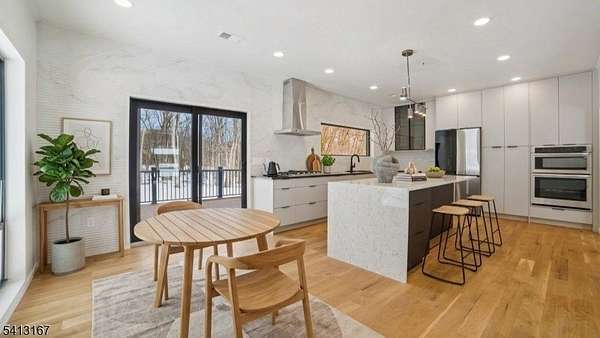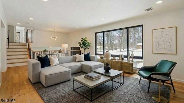 Reimagined for personal use - Custom unique expansive & open floor plan on 1. 8 Acres - Dramatic curb appeal from the circular driveway. Modern stucco & techwood vertical siding complements the black 8 ft European steel front door & oversized aluminum windows (coated & with argon for low E). Everything is sun lit - living room with gas fireplace. WOW kitchen is what home chefs dream of! Breakfast area, huge Island, cabinets, quartz counters & smart appliances. Dining room with additional seating area & a powder room. Steps down to a family room. Guest bedroom with a bath on this level, laundry room & access to garage with tiled floors & EV charger. Master bedroom with ensuite & balcony. 2 other bedrooms & bath on this level. Organized closets & bathrooms have LED mirrors & towel warmers. Finished lower level offers versatile options. Designer features & fixtures -Wi-Fi enabled thermostats for 4 zone gas HVAC, exterior lighting, cameras, door openers -hardwired TV outlets & ports. New 5 inch wide white oak flooring, accent walls, floating stairs, metal railings, solid doors, driveway, 200 Amp electric, insulation (even between floors & walls), plumbing, water softener & hot water heater. Huge Trex deck with gas connection for the grill. The incredibly private wooded backyard with no wetlands can be further designed for a host of outdoor activities - tennis or hoops! City utilities. Minutes to highways, NYC train, schools, shopping & restaurants. New tax assesment is $510,200