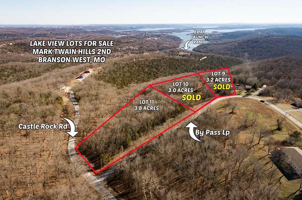 From Branson West take MO State Hwy 13 south to Hwy DD, turn on Hwy DD and follow DD a little more than a mile then left onto Castle Rock Rd and follow down the hill to By Pass Loop and turn right. Lot 11 is on your left at the intersection of By Pass Loop and Castle Rock Rd.