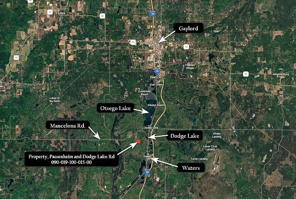 West on Mancelona Rd. from 27 then left on Passenheim Rd. Property on SW corner of Passenheim and Dodge Lake Rd.