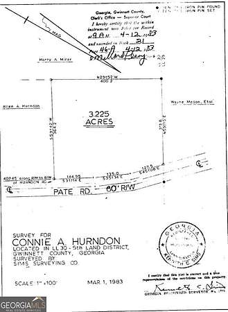 Est $1,904/moLarge 3.22-acre parcel in Snellville/Gwinnett County-perfect for a custom home or small development! Zoned R100, this property offers an excellent opportunity for builders, developers, or buyers seeking to create their dream home. The area is experiencing strong growth and provides convenient access to Atlanta, local schools, shopping, parks, and major roadways. Snellville combines a family-friendly suburban lifestyle with charming neighborhoods, great dining, and a strong sense of community. Use GPS address 3298 Pate Road-the land is directly across from that address. Buyer should verify all details with local government authorities.