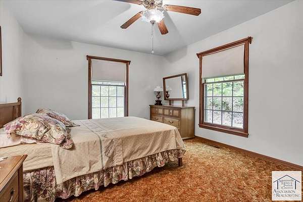 Wildlife enthusiasts, welcome to your secluded sanctuary in the heart of the desirable Patrick Springs community! This exceptional, one-owner estate spans over 47+ acres of pristine, picturesque land, offering unmatched tranquility, privacy, and breathtaking Blue Ridge Mountain views. Thoughtfully designed and custom-built by the Clark Brothers, this single-level home combines charm, functionality, and sustainability. Inside, you'll find a spacious primary suite, a conveniently located laundry room, a pantry, and an attached two-car garage. The layout of this home is perfect for both comfortable living and effortless entertaining. Step outside to the expansive patio, an ideal spot to relax or host gatherings while soaking in panoramic wooded views. The home includes an unfinished lower level, providing a blank canvas for future living space or customization. Additionally, two crawl spaces with poured concrete floors offer ample storage or flexible use options. For those who appreciate nature and self-sufficiency, the property features a spring-fed pond, a year-round flowing creek, and an irrigated garden, making this a true retreat for outdoor enthusiasts. A hunting cabin adjacent to the pond--already prepped for electricity--adds flexibility, whether for recreation, guests, or additional storage. Schedule your private tour today! Lot size and square footage approximate.