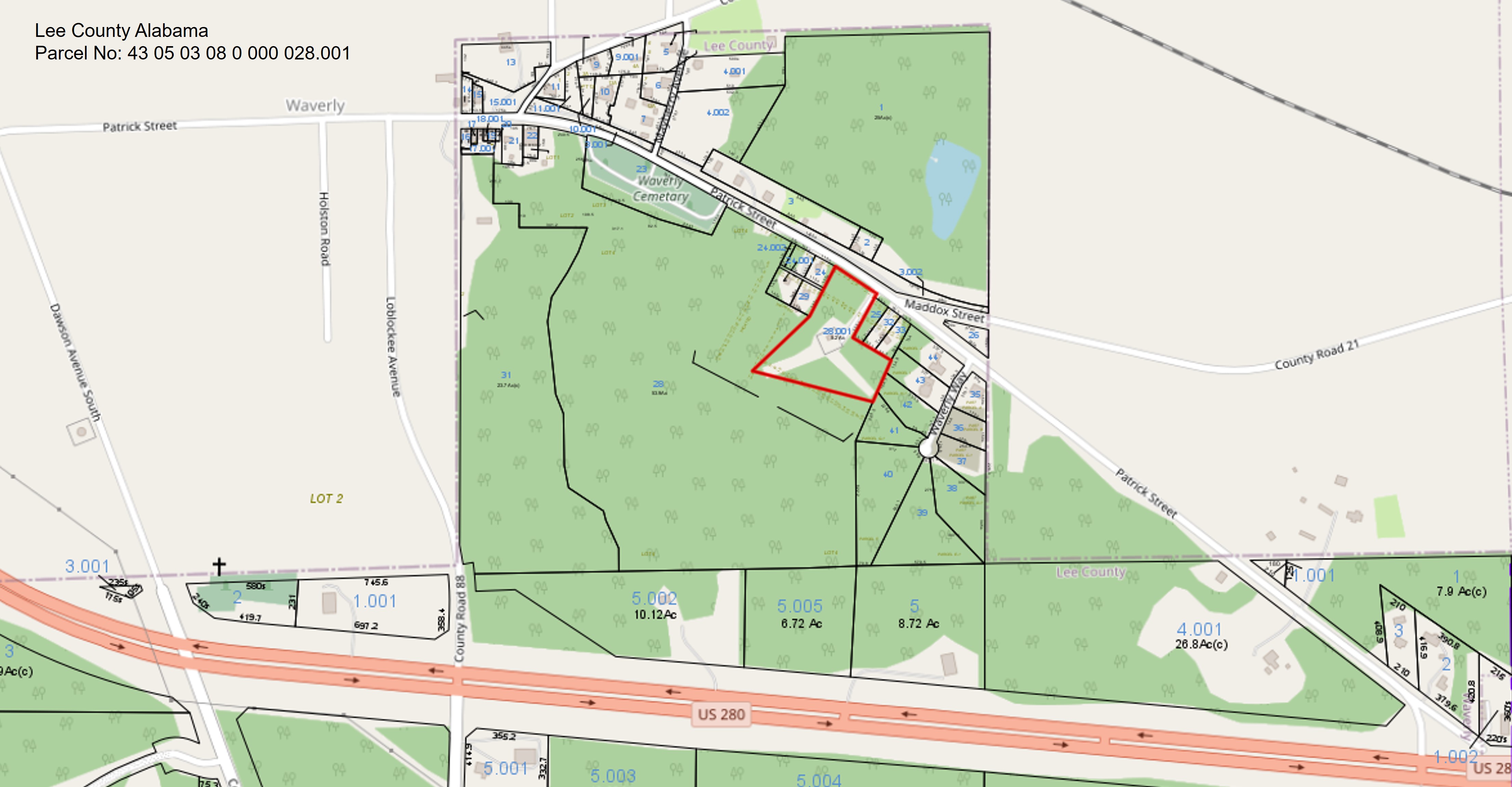 Rare opportunity to acquire 5.2 acres of high-potential, vacant land situated in Lee County/Waverly. This tract provides a fantastic site for a single-family home or small homestead. Located within 15 minutes of downtown Auburn and Auburn University with close proximity to Lake Martin, offering high potential for long-term value.