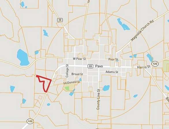 11 Acre parcel of land with towering pines, massive Swamp Chestnut Oaks, and a winding creek with well a defined, high creek bank. There is a big old world of discovery on this 11 acres. If you want a little time in the woods, a place to go hunting, or a homesite that will support a nice home and offer room to grow...this is your land. There was once a home on the property. There is a deep well and an outbuilding on the property. There is a small pond on the property that backs up to Reedy Creek. (As dry as it has been, the pond still has water and still has some fish in it.) The property has been vacant for some time. Check it out. Lay out where your home would go. Explore the woods! Check out the creek. l love these woods. See if you find the deer rubs that are scattered over the property. One acre of the property is inside the city limits of Pavo. With some TLC, the Barn/Shop Building on the property could be used as an apartment or workshop.(Pictures on the way.) As we cruise into spring and summer...where the boots and don't forget bug spray.