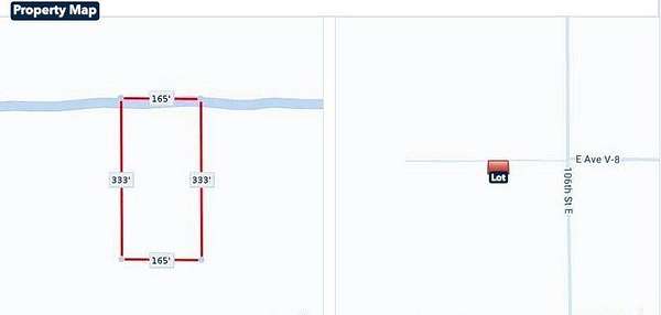 Pearblossom Hwy. Turn North onto CA-138 E to 106th St E. Lot will be down dirt road on the left. Lot dimensions are 165'x333'