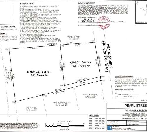 Chickamauga city! No subdivision=no restrictions! Walking distance to the semi-private schools that this lot is zoned for at Chickamauga Elementary and Gordon Lee schools! Fall in love with the historical beauty of Chickamauga and enjoy fantastic local eateries and shops in this charming town. The lot is level with a large, cleared front yard with the yard already established, and the remainder of the lot has only light clearing to be done. Home at 303 Pearl sits in front of this lot, please see survey attached. Located on a dead end street means no thru traffic. Very peaceful setting!