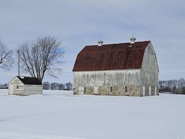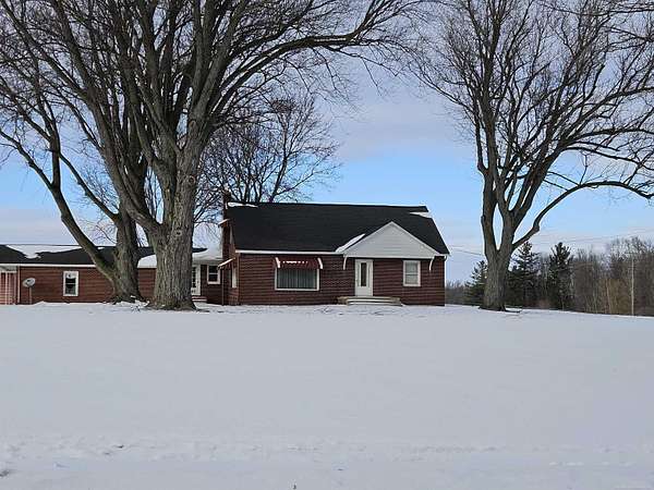 A RARE GEM on a knoll just outside of the Village of Peck This all-brick home offers 3 bedrooms and 1 1/2 baths and was built in 1949. Much of the home remains in its original condition, preserving its classic character. Two bedrooms are located on the main floor, while the second level features a third bedroom, a half bath, and a sitting area. Additional features include a full basement, natural gas forced-air heat, a 2-car attached garage, and a detached 3-car garage. The property also includes a stately historic 50' x 36' barn with a stone foundation. A total of five parcels are included. The home sits on 5.74 acres, along with two additional 3.16-acre parcels on Farr Road, 24.41 acres of tillable land, and 10.33 acres of commercially zoned land within the Village of Peck. Altogether, the property encompasses 46.8 acres.