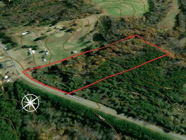 Property Overview: Identified as Lot-6, this parcel features gently sloping, wooded terrain, offering flexibility for home placement. The property has approximately 410ft of road frontage along Goodman Road, which is a public and state-maintained road.