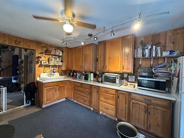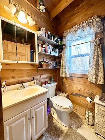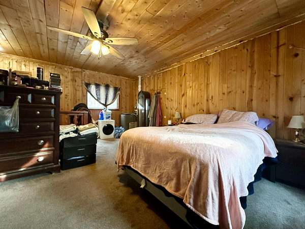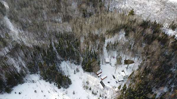 Explore this 43-acre secluded off-grid homestead, expertly designed for full-time living with all necessary amenities. Powered by solar panels, batteries, and a Generac LP generator, the home also features a newly installed drilled well and septic system. Starlink internet ensures connectivity. The interior layout includes a living room, kitchen, and full bathroom on the main level, with the upper level configured as a spacious master bedroom with additional storage space. The property is distinguished by its dense woodland, private spring-fed lake, and absence of nearby neighbors, rendering it perfect for those seeking an off-grid lifestyle or a serene hunting cabin.