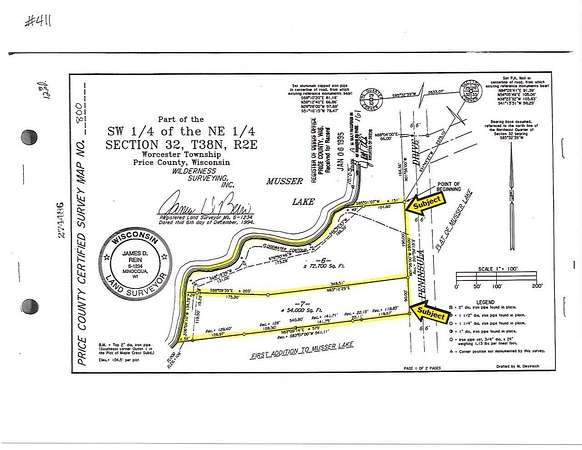 Est $759/mo(411/BZ) Two surveyed lots totaling 2.91 acres with 605+/- feet of frontage on Musser Lake. Musser Lake(flowage) is approximately 563 acres with 15' maximum depth and 5' average depth. Anglers can expect a variety of fish including; largemouth bass, musky, northern pike, panfish and walleye. Make this your Northwoods retreat! 2024 taxes: $952.73 (Part of SW-NE Lot 6 & 7 CSM, 32-38-2E)