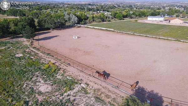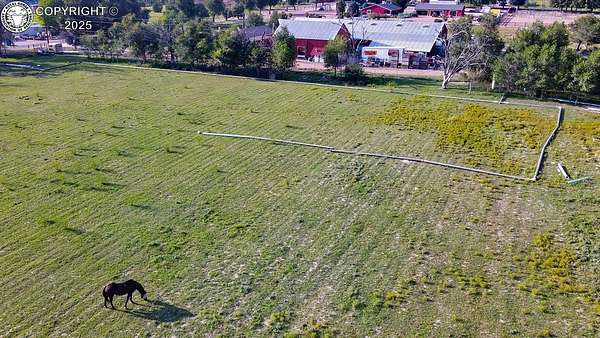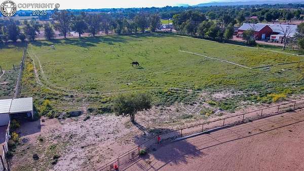 Est $1,523/moFully fenced for any livestock 5 acres with 5 shares of beaver park water irrigation. Located in quiet well established Penrose neighborhood all nice houses. Water tap included and 3 hydrants on property already. Welded pipe roping arena at the back of the property with horse paddocks and small storage shed. Would make a great lot for a new home. Large trees surround the property, and all aluminum irrigation pipe stays. Owner financing terms available.