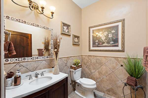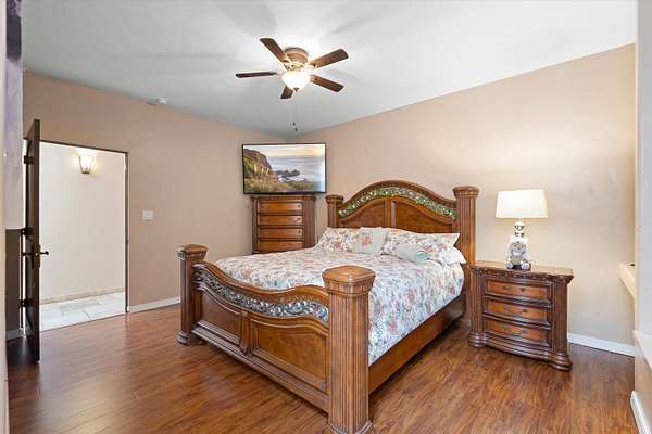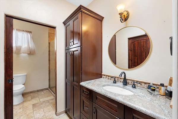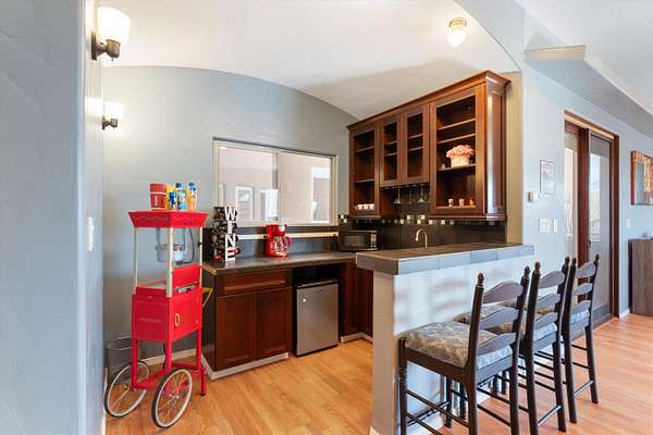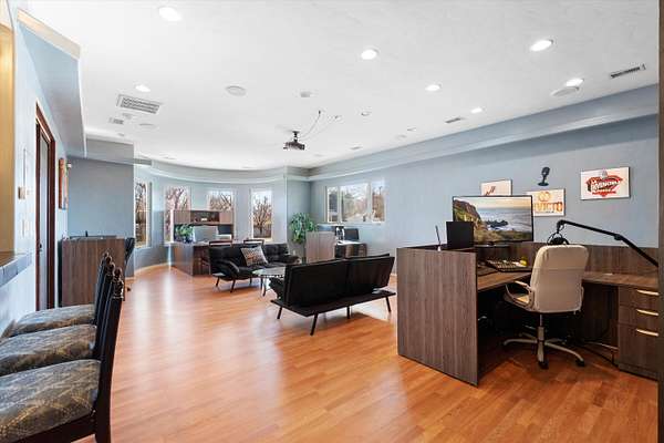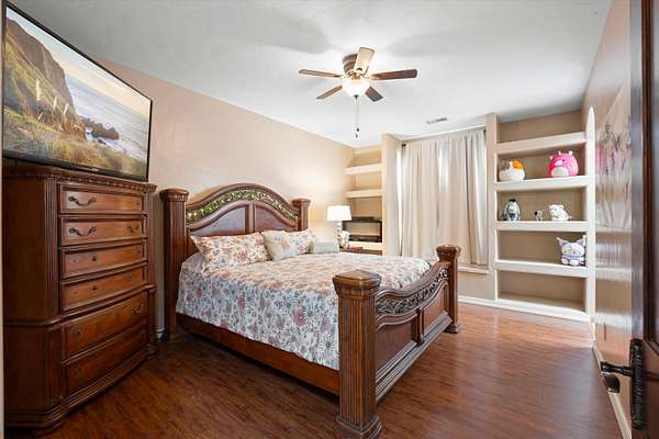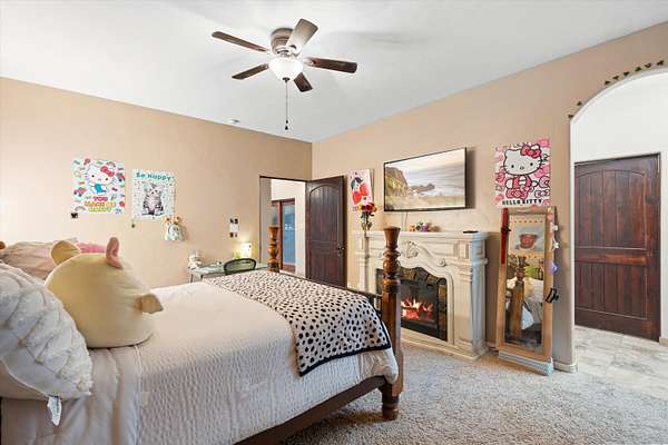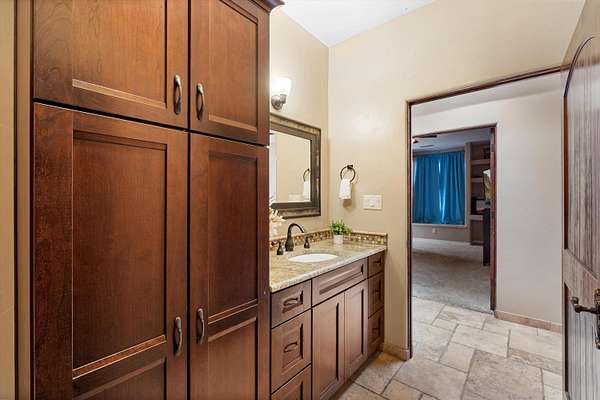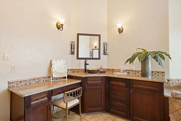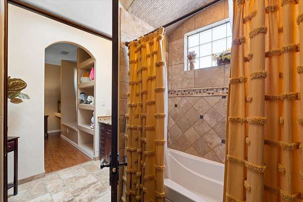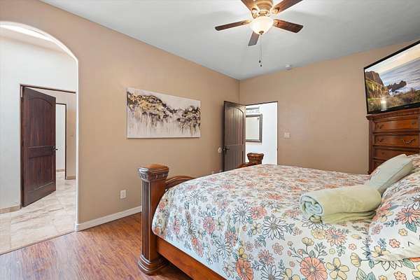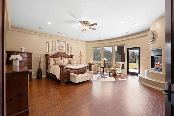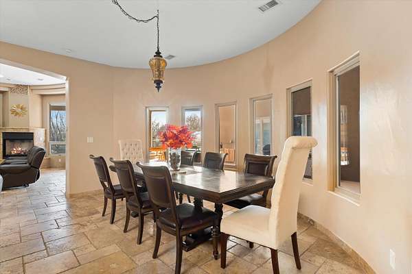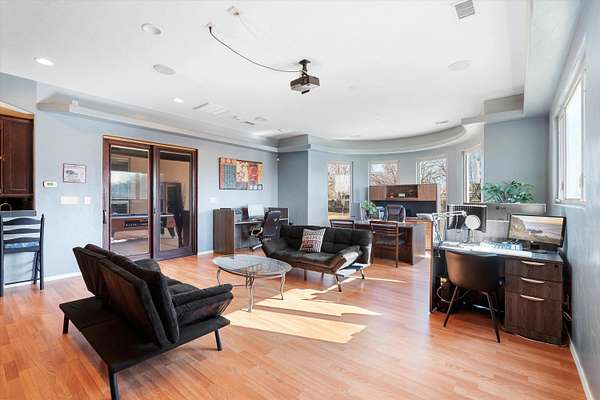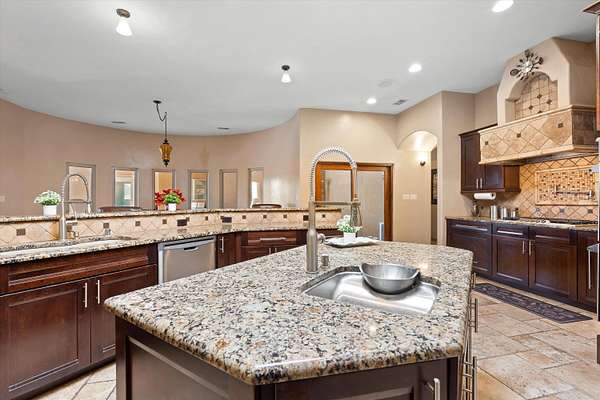 Set within a quiet, private gated community in the Town of Peralta, this estate offers over 5,500 total sq ft, 5 bedrooms, 4 full baths, and an oversized 4 car garage. Arrive to a grand foyer entry that sets the tone for the home's architectural detail and thoughtful built-ins. In the living room, a rounded, stepped tray ceiling and Venetian plaster add dimension, while custom built-in shelving throughout keeps spaces polished and intentional. The chef's kitchen anchors daily living and entertaining with oversized luxury granite countertops, dual fridge space, and a chef's sink with a built-in colander designed for real prep, not just display. Movie nights become an occasion in the dedicated theatre room with a built-in bar, and the home's barrel hallway ceilings and (more)