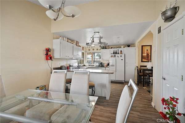 This property is a little under a half an acre with flat usable land, mostly paved. The manufactured home features 3 bedrooms, 2 bathrooms, and a powder room. It includes a large family room with a fireplace, a cute breakfast nook, and a formal dining area.