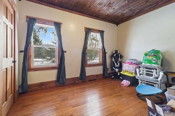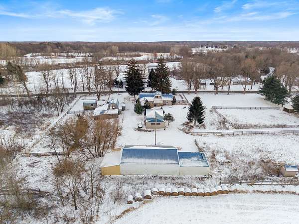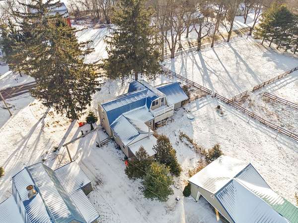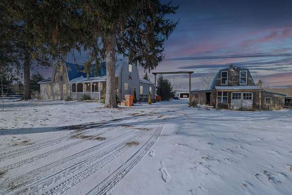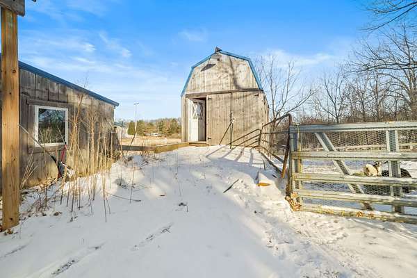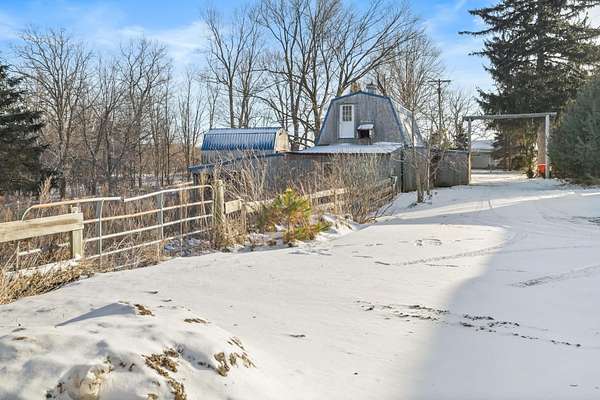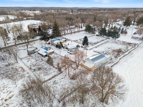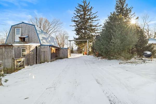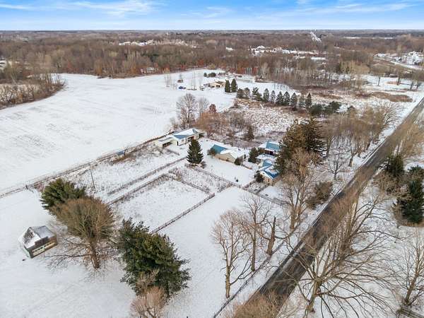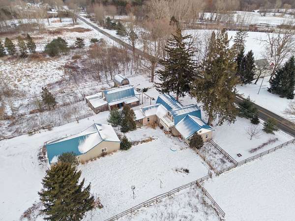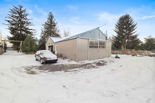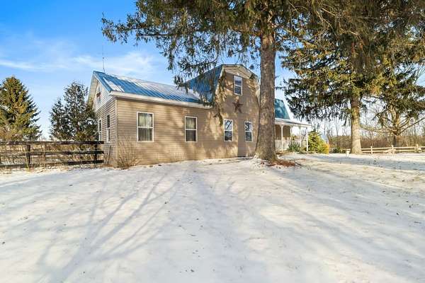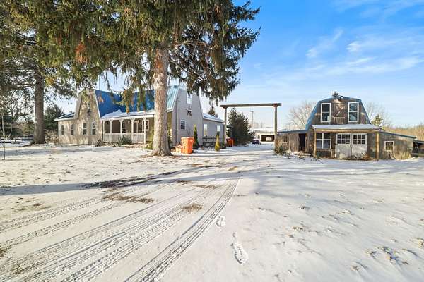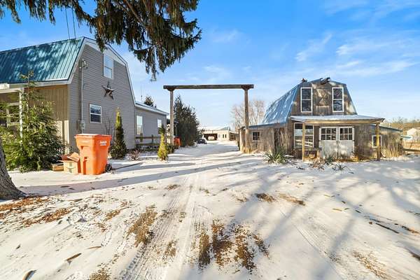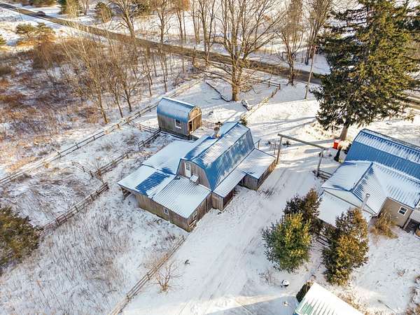 You are going to fall in love with this gorgeous 4bd/2ba "Barn Style" farm house on 2.5 acres, located in Perry Schools. The interior boasts beautiful wood trim, updated kitchen and main bath, hard wood floors, a large private first floor owner suite with private full bath and walk in closet, first floor laundry and beautiful living room with wood burning fireplace. Stepping outside, you will find nice landscaping, 4 outbuildings including: 25x50 Detached Garage with workshop, a 30x50 pole barn with additional 20x20 attached storage area, a 30x50 animal barn with animal stalls and outdoor corrals, and a 12x20 hay barn. You will also find a large vegetable garden and fresh fruit trees/vines including: apples, peaches, grapes, and raspberries. You can also enjoy a soak in the hot tub after a long day at work, complete with private entrance to the owners suite surrounded by beautiful wild flower gardens. This is the perfect property for anyone looking for quiet small town living, with ample space to relax, and the freedom to homestead. The possibilities are endless with this great property. Come see it for yourself today!