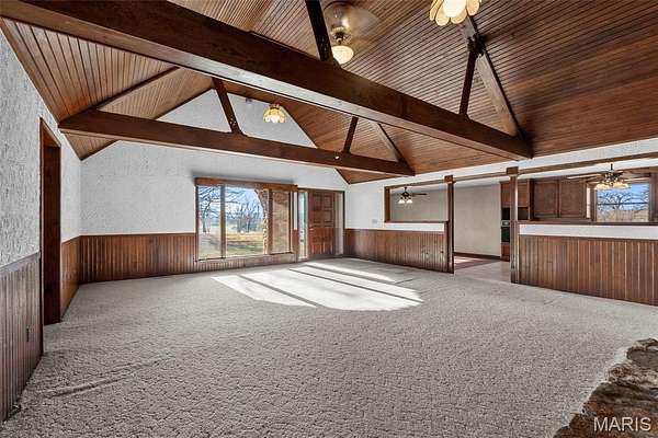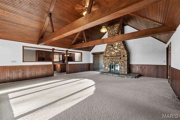 Discover the perfect blend of privacy, space, and comfort on this 6.7-acre retreat just outside of town. Tucked against a wooded backdrop, this home offers a peaceful setting with room to spread out. Inside, you'll love the spacious living room featuring a cozy wood-burning fireplace and direct access to the covered deck, also accessible from the primary bedroom, making it easy to enjoy quiet mornings or take in the views.