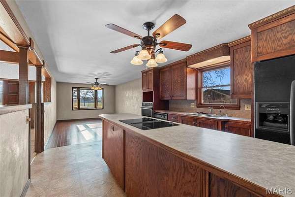 - Ceiling Fan(s), Kitchen Island, Kitchen/Dining Room Combo