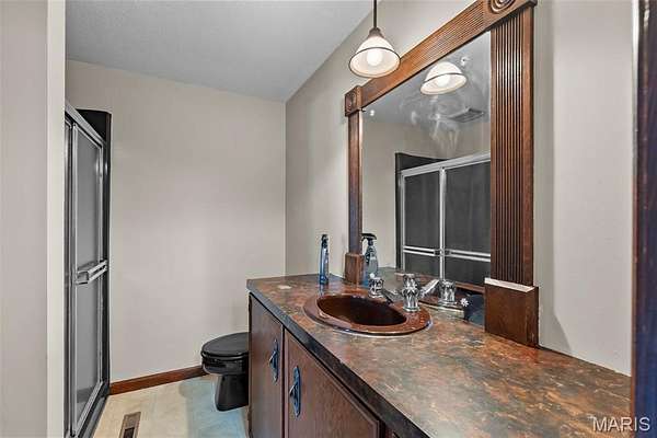 The primary bedroom offers a backdrop of the woods and boasts privacy. Convenience shines with a laundry room located off the main hallway and primary bathroom. The finished basement adds incredible versatility, complete with a wood stove, large rec room, office, family room, and an additional area that could potentially serve as a bedroom. The family room includes a bar area and walks out to the patio and backyard, both designed for gatherings and good times.