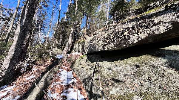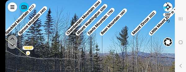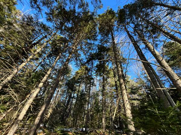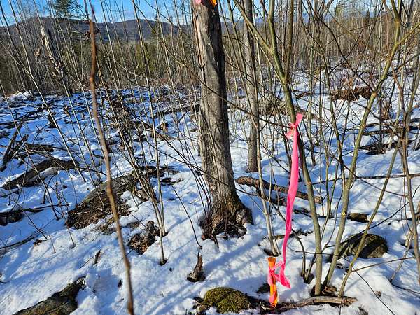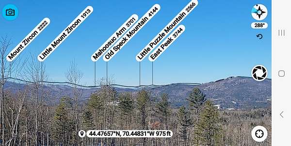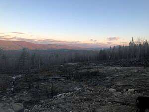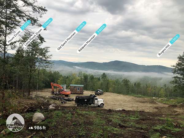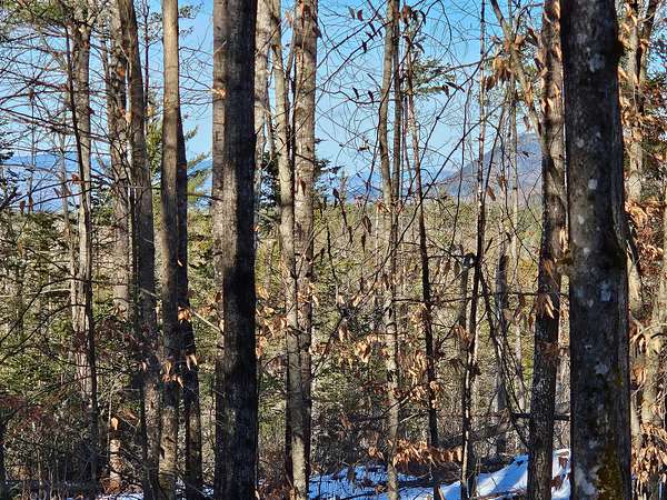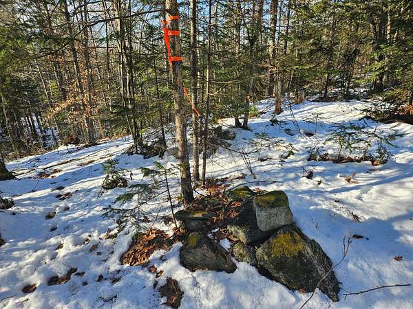 Elevations range from ~700 feet along the western boundary to 1,300 feet in the northeast corner. Recent timber harvesting opened dramatic views of both nearby and distant peaks, including Mount Zircon (2,222'), Little Zircon, Speckled Mountain, Spruce Mountain, Saddleback (4,116'), Jackson Mountain, Mount Reddington, Old Speck, and the Mahoosuc Arm.