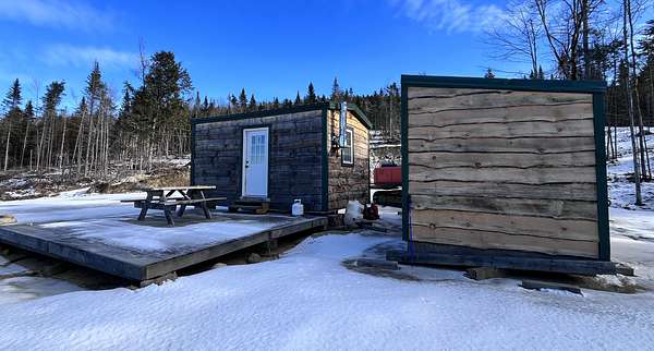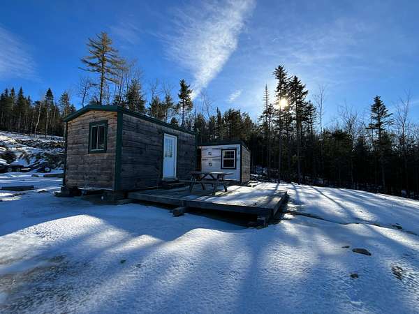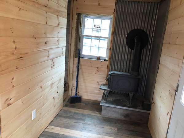 A dug well--ten feet below grade with four well tiles--gravity feeds water to the cabin. The 1,000-gallon concrete holding tank is town-approved, with a septic design on file. An electric hot-water heater runs off a portable generator, and power is nearby. The town-maintained road ends about 250 feet from the property line. Enjoy the tiny house as it is OR build a year-round retreat!
