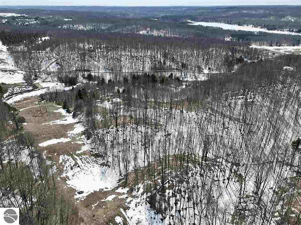 Tucked away on a county-maintained road, this private 40-acre parcel offers the perfect blend of seclusion and accessibility, just minutes from the Six Mile Lake public launch. Approximately 85% wooded, the property showcases beautifully mixed terrain with a diverse blend of hardwoods, rolling hills, and some steeper elevations that create exceptional privacy and scenic character. A 200' gravel driveway with culvert is already in place, leading to a designated building envelope of approximately 75' x 150', with plenty of room to expand as your vision grows. Newly added trails provide easy access throughout the land—ideal for recreation, hunting, or simply exploring your own slice of Northern Michigan. Abundant apple trees enhance the natural setting and attract wildlife, while the landscape also offers an excellent opportunity to create a custom pond. Even better, the seller is a licensed general contractor and is willing to build to suit, making this a rare chance to bring your dream home or getaway to life in a truly special setting!