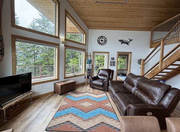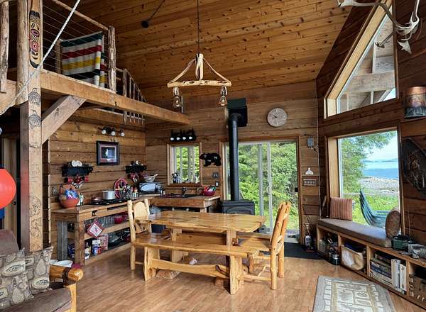Est $2,879/moOff-grid luxury! Beautiful prow-front cabin w/ soaring ceilings & panoramic views. Total peace & solitude on 3 adjoining lots w/ a total of nearly 5 waterfront acres! Property is ocean accessible & just a short hike from the road system. Lots of Alaskan touches & features, & wildlife viewing from the deck. Fishing, crabbing, shrimping, tide pooling & kayaking just off the doorstep.