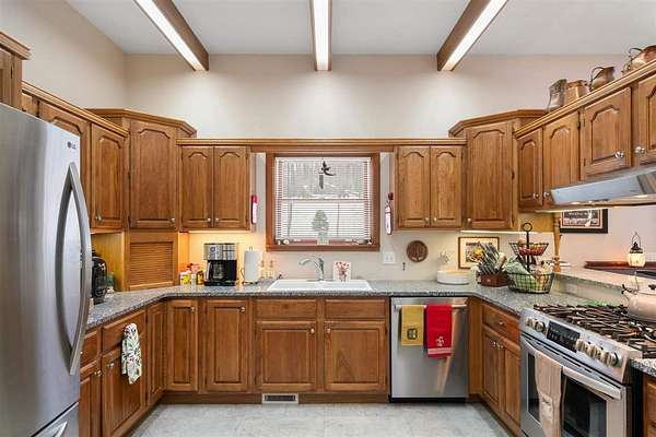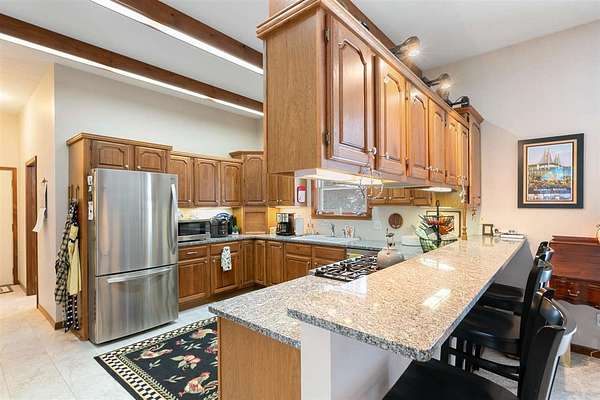 Nestled in a very private setting close to Petoskey, this exceptional home offers the ideal blend of tranquil living and convenient access to amenities. The thoughtfully designed open floor plan showcases spacious rooms throughout, enhanced by elegant 10-foot ceilings that create an airy, welcoming atmosphere. The main floor features a luxurious owner's suite complete with a separate sitting room, perfect for quiet moments or morning coffee. The heart of the home is the large, open kitchen and eating area, beautifully appointed with custom built-ins that provide both style and functionality. Natural light floods the formal living room through an abundance of windows, while the finished walk-out lower level offers additional living space with 9-foot ceilings, three generous bedrooms, one full bath, and a spacious family room ideal for gatherings or relaxation. Set on 2.55 acres, this property provides ample space and privacy while maintaining easy access to modern conveniences. The fenced backyard creates a safe haven for pets to roam freely, and two expansive decks offer perfect venues for entertaining or simply enjoying the peaceful surroundings. When autumn arrives, enjoy filtered views of Walloon Lake across the street. Recent improvements include conversion to natural gas, new water heater, upgraded furnace components, professional interior painting, new flooring in key areas, three new toilets, updated appliances, Generac generator installation, and comprehensive window treatments. The property's prime location puts you minutes from Meijer, Walmart, Aldi, Lowe's, and downtown Petoskey's beautiful shoreline. Experience effortless living in this move-in ready home schedule your private showing today and discover why this could be your perfect sanctuary! Also offered with the house on 7.69 acres with 2nd two-story, concrete and stick-built garage for $749,900, MLS 478465.