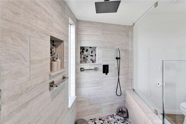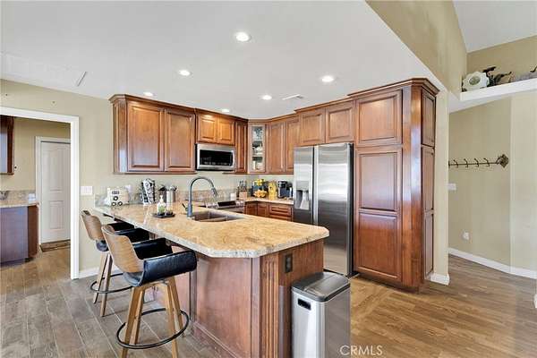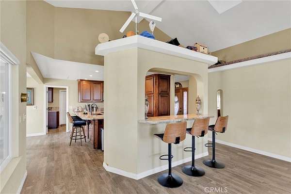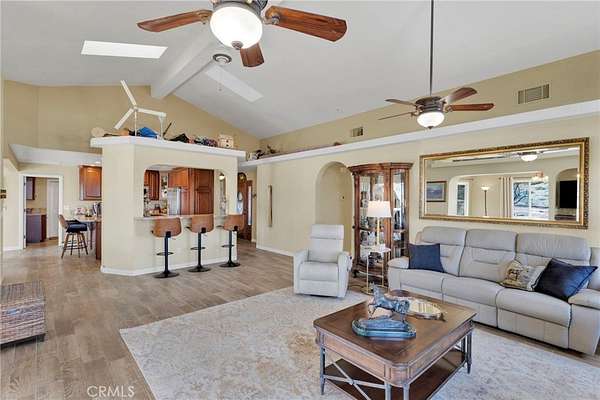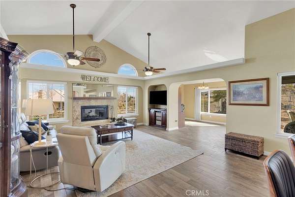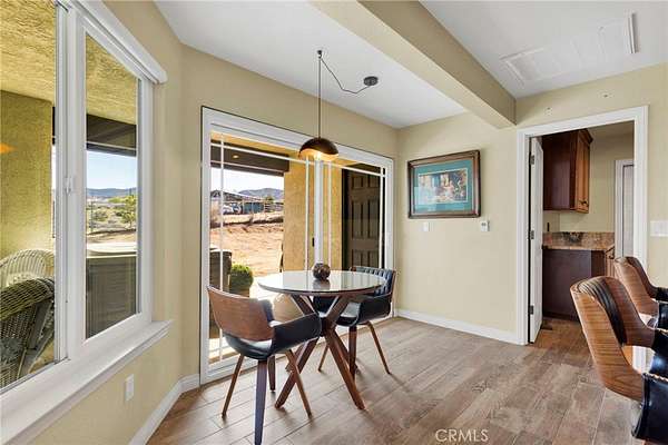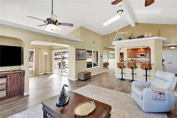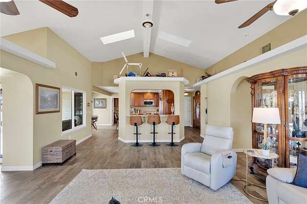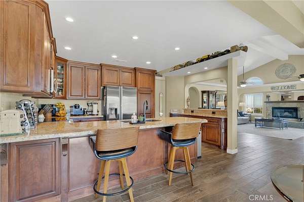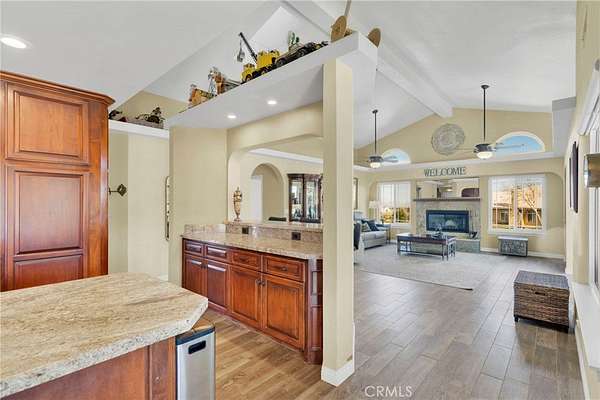 Entry area is elegant with brick steps, surrounded by drought tolerant landscape. Foyer is warm and inviting, with radiant heat wood-like tile throughout the traffic areas. Open Concept living room, kitchen and dining offer a great space for entertaining, upgraded cabinets and new windows allow the natural light to flow throughout the room. Granite countertops, buffet area, 2 at bar eating areas, and dining area in adjacent to the kitchen are just some of the great features to this updated kitchen. Electric appliances include micro-vent, electric range/oven, and dishwasher. Nice large deep sink and granite countertops complement the upgraded cabinets. Buffet area and bar open to the living room with built ins for entertainment, granite surround wood fireplace, vaulted ceilings, and newer windows with mullions offer great natural light, adjacent is the formal dining with slider to under-roof patio retreat.