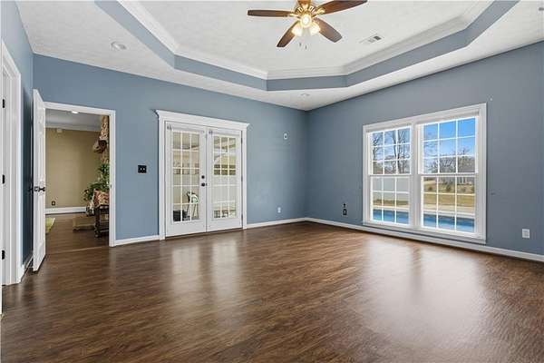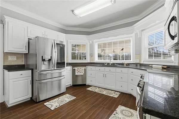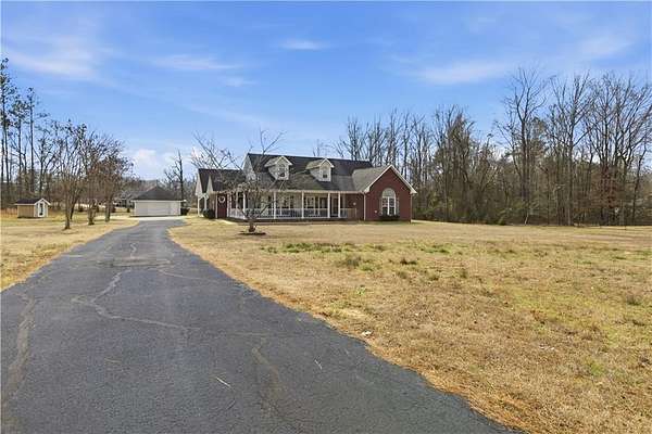 Pool Home on 2.29 Acres in Beautiful Deerfield Subdivision! This stunning 3-bedroom, 3-bath ranch-style home offers 2,897 sq. ft. of spacious living, perfectly set back on a private 2.29-acre lot with a long driveway and charming wraparound porch that creates exceptional curb appeal. Step into the welcoming foyer and enjoy the expansive open floor plan designed for both everyday living and entertaining. The living room flows seamlessly into an oversized country kitchen featuring abundant cabinetry, granite counter tops, a large breakfast bar, and a generous eat-in dining area is truly a chef's dream. A convenient service porch and indoor laundry room are located just off the kitchen for added functionality. The main-level primary suite is a private retreat, complete with a spacious bathroom offering dual vanities, a large soaking tub, separate shower, and walk-in closet. An additional bedroom is located downstairs, while upstairs you'll find a third bedroom and an enormous bonus/game/media room perfect for entertaining, hobbies, or flexible living space. The upstairs area features a newer HVAC unit for added comfort. Step outside to your own backyard oasis featuring a beautiful in-ground swimming pool surrounded by a white privacy fence ideal for relaxing or hosting gatherings. The property also includes a large detached garage/workshop and a spacious covered carport. With fresh exterior paint, generous acreage, and resort-style amenities, this Deerfield beauty is truly a must-see.