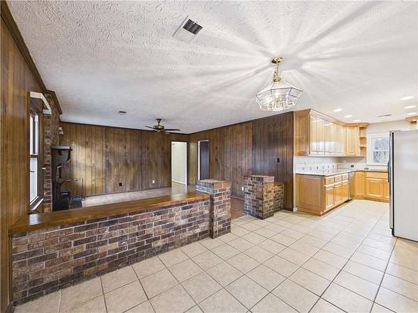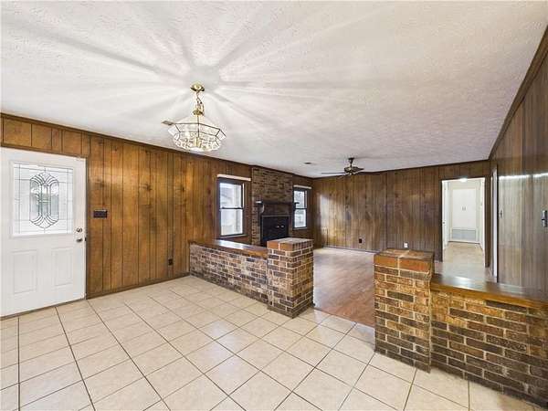 Privacy, Potential, and 1.78 Acres! This 3-bedroom, 2-bathroom brick home sits on three consolidated lots, offering incredible space to grow, play, or develop. The interior features a bright, open-concept floor plan where the kitchen, dining, and living areas flow together, anchored by a cozy brick fireplace.