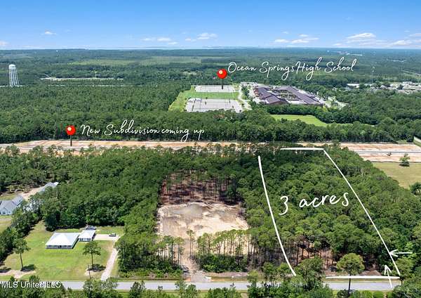 This is your chance to own acreage in Mississippi's most desirable coastal town of Ocean Springs that is known for vibrant art festivals, southern hospitality and seafood restaurants. This 3 acre lot is perfect for a new homesite or a pole barn alone as it's zoned A-2 livestock is allowed. Located on a dead-end street not even a mile away from OS High School. Drive 5 minutes to from Shell Landing Golf Club & 10 minutes away from: Webb's Landing boat launch & pier, Aldi, Walmart, hospital and dining. Easy commute to I-10.