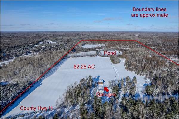 From Minocqua take Hwy 70 west to Fifield to a Left on Hwy 13 southward to Phillips - take Hwy H in phillips Eastward for about 8 miles to the property on teh North side of Hwy H - There are other routes depending on vehicle type. See maps.