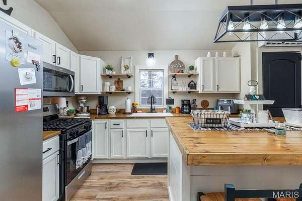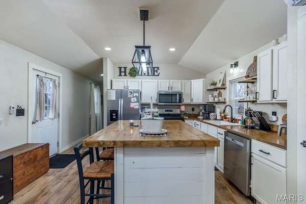 LOOKING for that AFFORDABLE NEWER HOME On 5 ACRES ? This SHOUSE STYLE HOME is UPGRADED with all the MODERN HOME INTERIOR TOUCHES. Privacy offered with Farms all around you. This STARTER HOME or just a GREAT WEEKEND GET AWAY offers LVP flooring, UPGRADED APPLIANCES , A LARGE CENTER BUTCHER BLOCK ISLAND with LARGE STORAGE SPACE . A MODER MASTER BEDROOM and FULL BATH with A VESSEL DOUBLE VANITY SINKS, TUB- SHOWER COMBO, VERY OPEN FLOOR PLAN THIS METAL HOME W/METAL ROOF IS ANCHORED TO A CONCRETE FOUNDATION SLAB. DON'T WORRY ABOUT YOUR CARS OR TOYS with THE LARGE METAL 24 X 20 CARPORT and A STORAGE CONTAINER. THIS HOME HAS TWO MINI SPLIT HEATING & COOLING UNITS. A MIX OF OPEN GROUND and WOODS.
