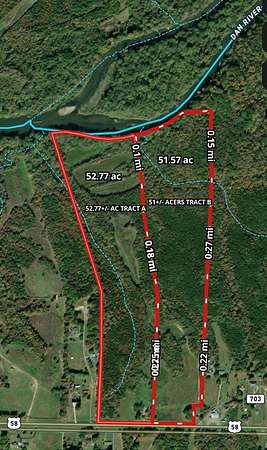 Rare find on the Dan River!! Over 50 acres on the Dan River situated between South Boston and Danville, VA. There was an abundance of wildlife sign on this tract. There is a creek towards the back of the property that runs into the river that was holding wood ducks on my first visit. This tract is being subdivided off of 107.9 acres (PRN) 15565. This tract has it all. There is over 600 ft of frontage on the Dan River. The majority of land consist of mixed timber. It is roughly 8 acres of open land at the front of the property, and a 1 acre field further back perfect for a food plot. There is an adjoining tract available as well that would make the total 107 acres! Located less than 30 minutes from Danville and only 8 minutes from South Boston