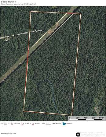 Tucked away on quiet Pigeon Ridge Lane in Beaver Dam, Kentucky, this 72+- acre wooded tract offers an excellent blend of privacy, recreation, and long-term land value. The property is entirely timbered and was last selectively cut in 1995, allowing nearly three decades of regrowth that has created a healthy, mature stand and outstanding wildlife habitat. A natural stream feeds into the back side of the property, providing a consistent water source that is a major draw for wildlife. This feature creates natural travel corridors and bedding areas, making the property well-suited for strategic stand placement and year-round recreational use. Water and electric are available along the road, adding convenience for a future cabin, campsite, or recreational improvements. The area is known for strong populations of whitetail deer and wild turkey, and this tract checks all the boxes hunters look for--thick cover, natural browse, and reliable water--offering excellent deer and turkey hunting opportunities throughout the season. Adding to the character of the location, Bill Monroe's legendary home place--the birthplace of bluegrass music--is located just up the road, giving this property a unique sense of local history and Kentucky heritage. Whether you're searching for a dedicated hunting tract, a private recreational getaway, or a long-term investment in timber and land, this 72+- acre property delivers seclusion, natural beauty, and classic Kentucky outdoor appeal in a desirable Ohio County location just minutes from Beaver Dam.