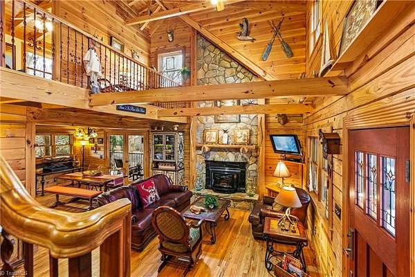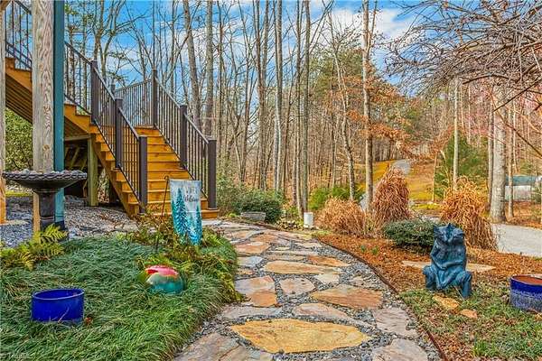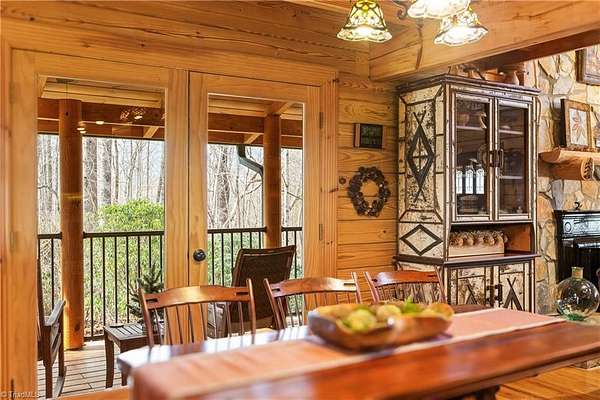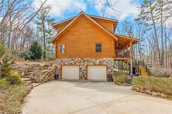 Located just 20 minutes from downtown Pilot Mountain, this 3-bedroom, 1.5-bath log home offers the perfect blend of privacy and accessibility on 4.19 beautifully maintained acres. Inside, a striking stone fireplace anchors the living area, now enhanced with a brand-new wood stove insert that brings both warmth and efficiency. The home features a full basement, offering excellent storage, workshop space, or possible future expansion potential. Step outside and experience thoughtfully designed landscaping that will bloom throughout the summer months. Moss-covered trails wind gently through the property, creating a peaceful setting to explore and unwind. A wraparound porch invites you to slow down and enjoy the surrounding nature, while the on-site greenhouse provides an ideal space for gardening enthusiasts.