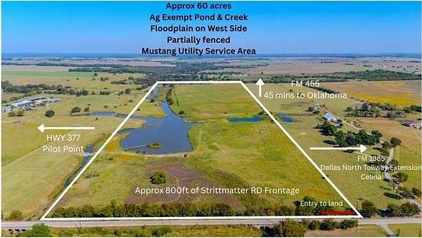 This property is surrounded by master-planned communities and lies just minutes from Pilot Point, Aubrey, and Celina. With the City of Pilot Point's recently approved Master Plan, this corridor continues to see strong residential and commercial demand.