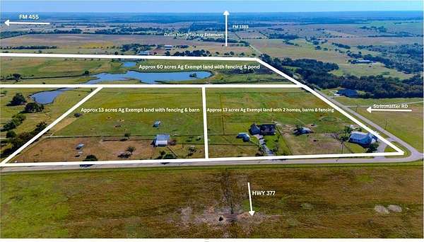 Prime location surrounded by ongoing development and rapid expansion. This 60-acre tract is part of a large family ranch and offers excellent potential for residential, commercial, or mixed-use projects. Situated in the heart of the Golden Corridor, this property provides easy access to Highway 377, FM 1385, and the Dallas North Tollway Extension.