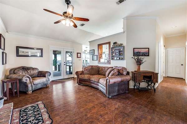 Est $14,585/moBeautiful sunrise and sunset views from this well kept home on 12 acres with 2 barns. Fenced and cross fenced. Frontage on newly improved FM 1385. Near future developments. ETJ of Pilot Point. Excellent opportunity in a rapidly growing area.