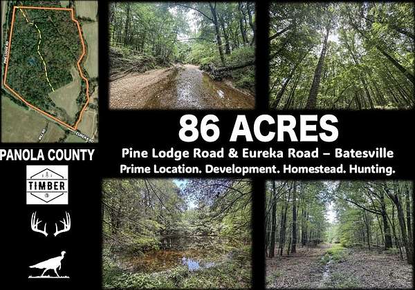 Est $5,138/moWelcome to the Pine Lodge 86! This paradise property is on the corner of Pine Lodge & Eureka Road, ready for development or a secluded private estate. Just 20 minutes from Oxford & 5 minutes from I-55, this tract has big hardwoods & pine, a little pond, & a picturesque wide creek on the eastern boundary. There's a solid road running through the middle from Pine Lodge Road all the way down to the 8-acre field. The location is unique with about 50 acres inside city limits & the rest in the county. Great deer & turkey hunting with city utilities & fiber internet available!