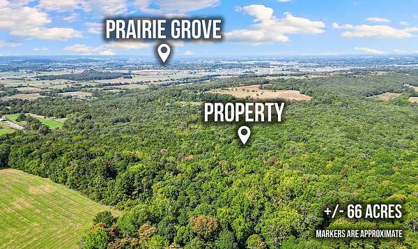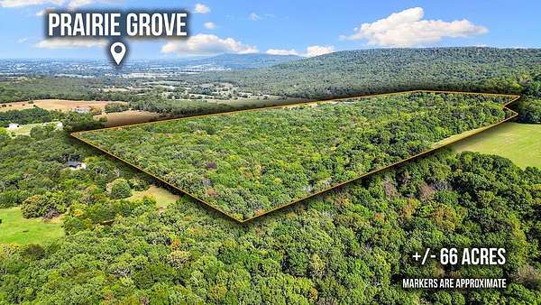 Discover the perfect location to construct your dream home, nestled on the edge of the charming town of Prairie Grove. Situated just beyond the end of the paved road, this property offers both serene privacy and convenient access to local amenities. Public water is readily available at the road. The land features secluded woodlands, striking boulder formations, and select tracts with small ponds. With topography ranging from level to gently rolling, you can choose the ideal tract to suit your vision. Embrace the opportunity to create your private retreat in this picturesque setting. Up to 66 acres available (see listings #1325077 & 1325080). Hard to find this kind of privacy with this kind of convenience!