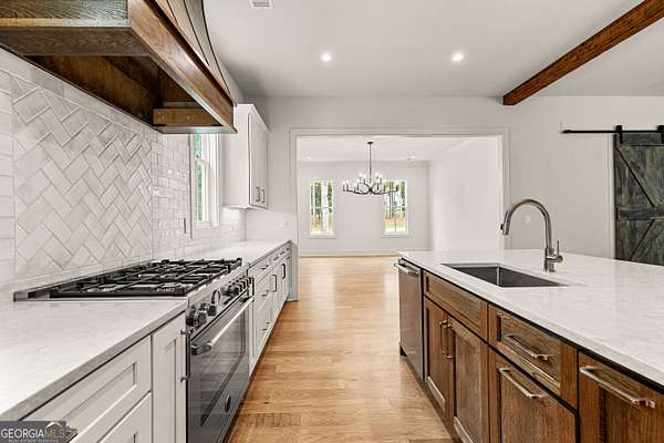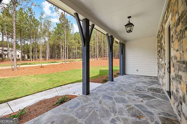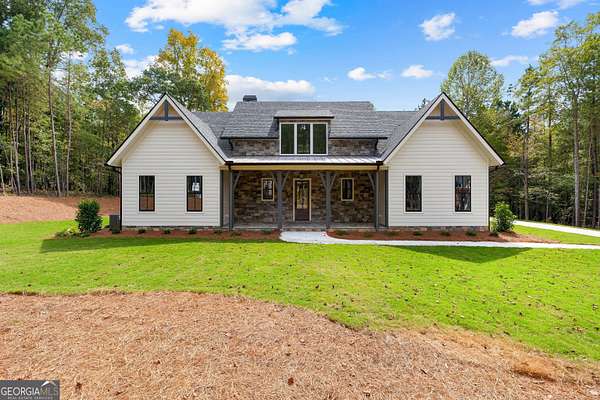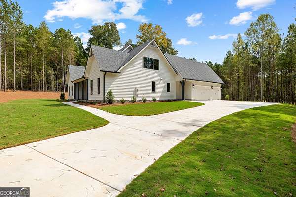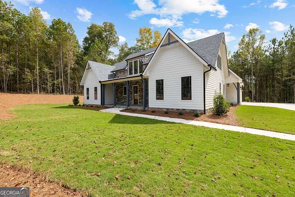Looking for a quiet and private location to call home? Come preview this beautiful new, custom home built by Martin Dodson Homes on 3.36 acres in Sharpsburg. This gorgeous home was just completed in September of 2025, and is now ready for move in. Greystone Manor sits at the end of the road, in the cul-de-sac, on a beautiful private lot. Our Greystone Manor plan is built with high end finishes and materials, upgraded appliances, foam insulation, and hardwood floors throughout. This custom home designed by Mitch Ginn features a beautiful, useful scullery right off the kitchen and living area, to make entertaining a true pleasure. Your formal dining area is located next to the scullery and off the kitchen, so family gatherings are elegant and easy. The large family room features a fireplace, and sliding glass doors leading out onto a covered porch with a fireplace and huge, private back yard. The 3.36 acre lot will allow your family privacy and room to enjoy outdoor activities such as gardening, a hobby farm, or simply enjoying a simpler way of life. There is plenty of room for a pool, and additional outdoor kitchen. This special enclave of custom homes in Pine Gate is located in an area of farmland and larger acreage homes off of Bob Smith Road. Come enjoy an intentional lifestyle surrounded by nature. Specially curated selections were made by the award winning team at Palmer Kay Design in Peachtree City. Please note that the gravel road will be hard surface after all construction is completed.